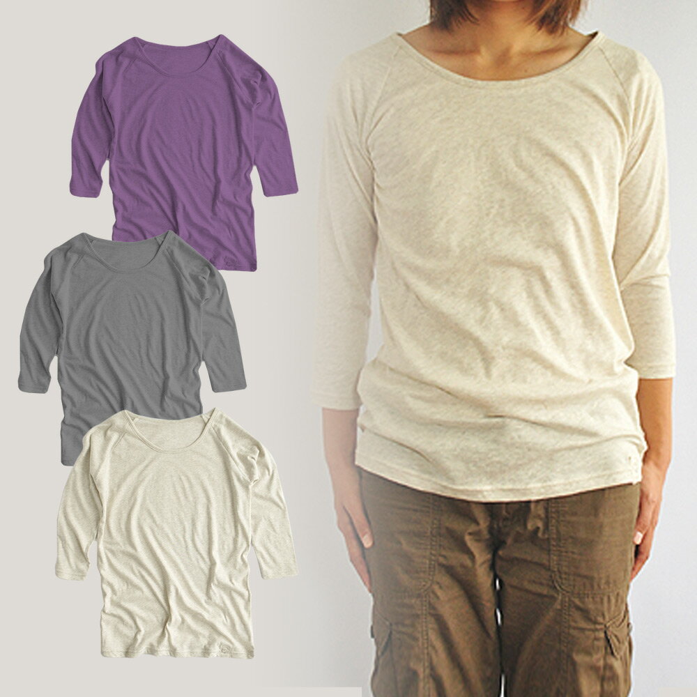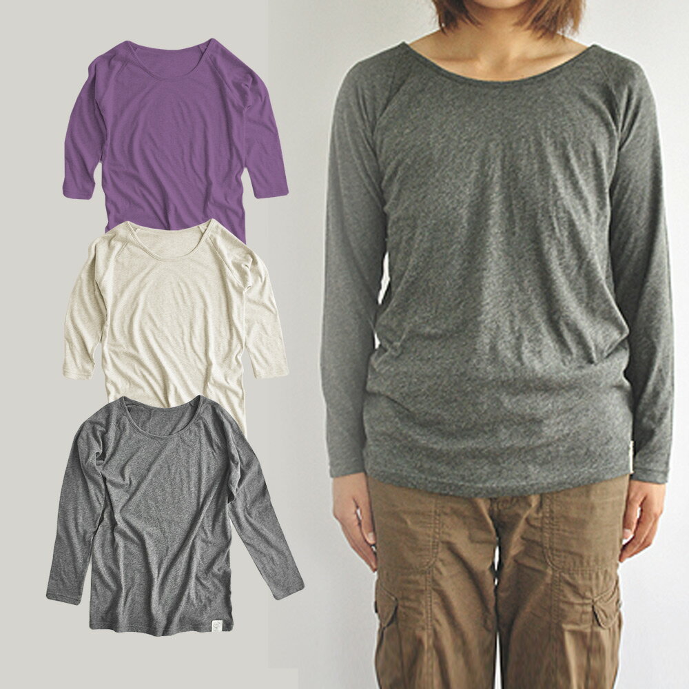 オーガニックコットン 7分袖Tシャツ レディース S M L オーガニックコットンガーゼカットソー 無地 チャコール オートミール パープル 日本製 ファブリックプラス Fabric plus[オーガニックコットンガーゼカットソー7分袖レディース]